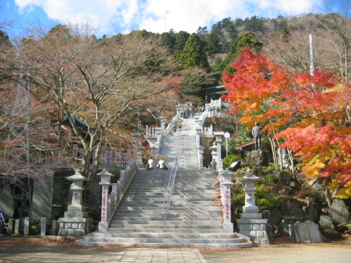 大山ケーブルの下社駅を降りると下社まで少し長めの階段が続きます。